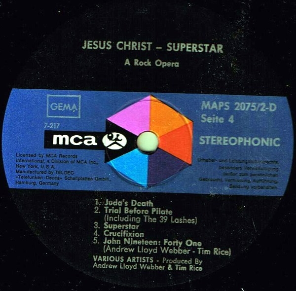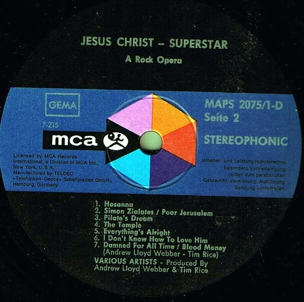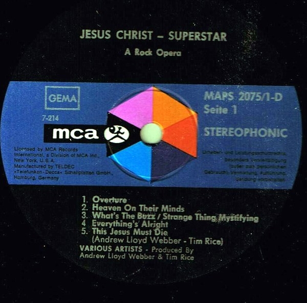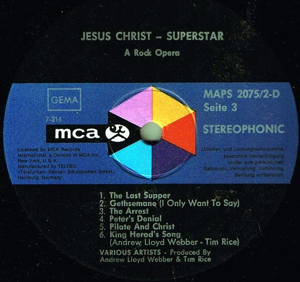 Words & Music & Production by Tim Rice and Andrew Lloyd Webber. Recorded in England. . Jesus Christ Superstar, A Rock Opera. . Acoustic Guitar - Henry McCullough