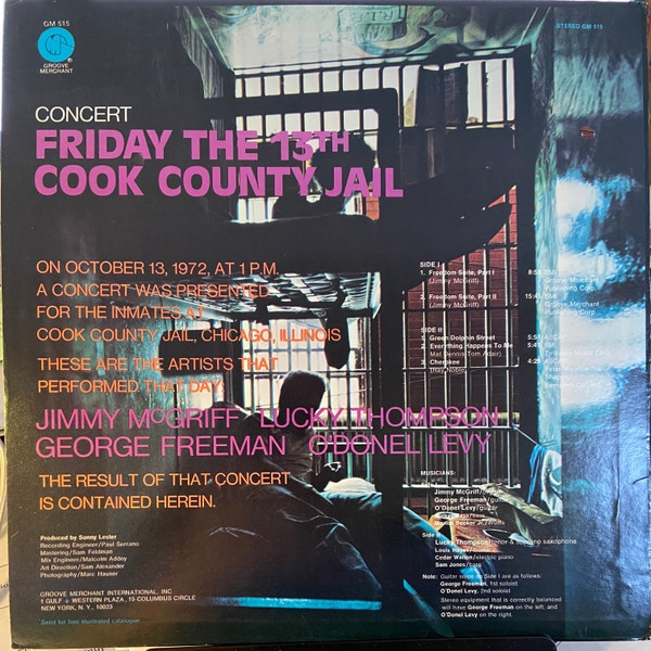 Este conjunto en vivo de pistas de soul jazz se grabó en la cárcel del condado de Cook en Chicago el viernes 13 de 1972, ¡y apenas podemos pensar en un lugar más oscuro para grabar un álbum de soul jazz! El lado uno presenta la bien llamada "Freedom Suite", un groover extendido tocado por Jimmy McGriff, y un grupo de 2 guitarras que incluye a George Freeman y Odonel Levy, y el lado dos tiene a Lucky Thompson tocando en un grupo conmovedor con Cedar Walton en el piano eléctrico, en las pistas "Green Dolphin Street" y "Everything Happens To Me". Un evento bastante increíble para ser grabado