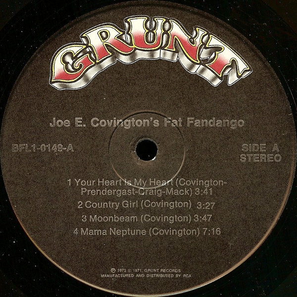 An original vinyl record album by JOE E COVINGTON ...."FAT FANDANGO"....GRUNT 0149.