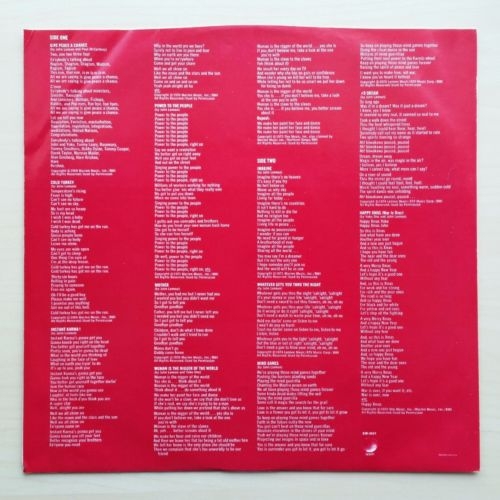 super gruesa carpeta que contiene el encarte interior,a destar lo curioso de que los tutulos de las canciones de los temas del discos que aparecen en el label estan en castellano