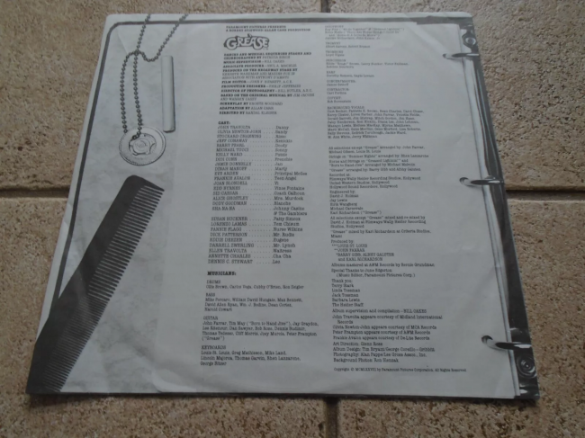 Además de los intérpretes John Travolta y Olivia Newton-John, el álbum también presentó canciones del grupo de rock n roll Sha Na Na, así como la exitosa canción "Grease", una canción escrita por Barry Gibb (de los Bee Gees) y cantada por Frankie Valli (de The Four Seasons) que fue un número uno adicional de Estados Unidos.