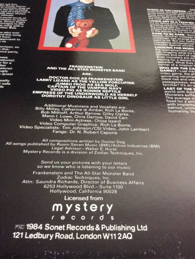 Kim Fowley (productor, compositor y vocalista), representado en esta producción como 'Doctor Hog', arreglada por Bill Millay. Con los músicos Gilby Clark (Guns n Roses), David Carr (The Foundations), Arthur Barrow (Frank Zappa), Chris Darrow (Nitty Gritty Dirt Band), Bob Mithoff (Rey de las bandas sonoras de películas de serie B), Mark Buchholtz (RadioMusic), Harvey Kubernick (escritor), Catherine di Amber (The New Runaways), Rich La Bonté (The NY Huns), Jonathan Daniel (Candy) y Rick Ferrante (también conocido como Kyle Vincent). Kim Fowley es un conocido productor, músico, compositor, cineasta y comentarista de radio estadounidense. Se dio a conocer a través de la gestión de la banda de rock femenino The Runaways.