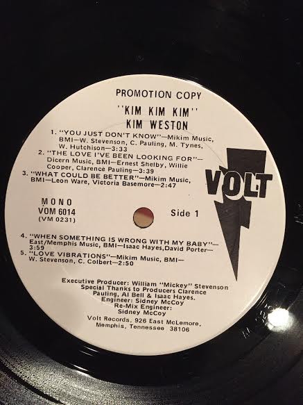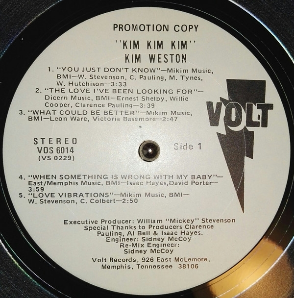 Cantante de soul de Detroit: Agatha Natalie Weston, también conocida como Kim Weston, 'Kim Kim Kim'. Producida por Al Bel e Isaac Hayes. También son populares las rutas de sabor funk como 'When Something Is Wrong With My Baby' muestreadas en la parte de introducción, 'Soul On Fire' y 'Brothers & Sisters (Get Together)'.