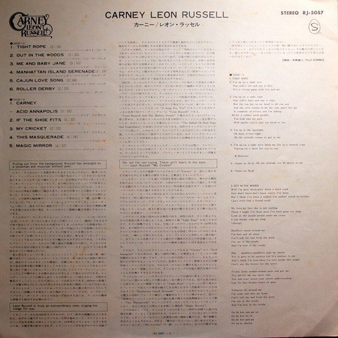 fue su 3º albun editado y uno de sus mas emblematicos trabajos, quiza su discos de mas exito....ademas de ser el 1º que compre para mi coleccion..tiene un sorprendente comienzo y temas ya clasicos de leon russell como: Tight Rope" y "This Masquerade