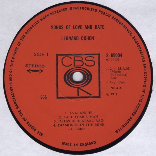 Songs of Love and Hate es el tercer álbum de Leonard Cohen!!