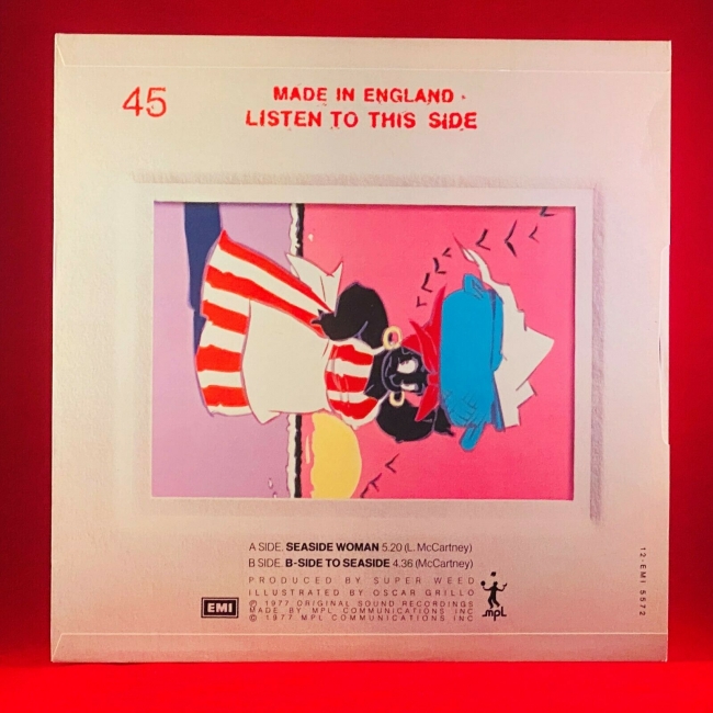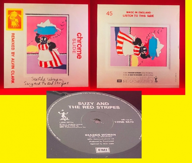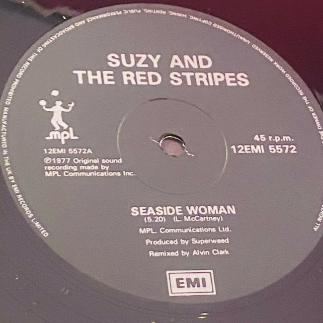 LINDA and PAUL McCARTNEY Suzy and the red stripes 12 Inch Single Seaside Woman_Side to seaside 1977 A+M(UK Press stereo 12 EMI 5572) Vinyl EX Cover VG++.