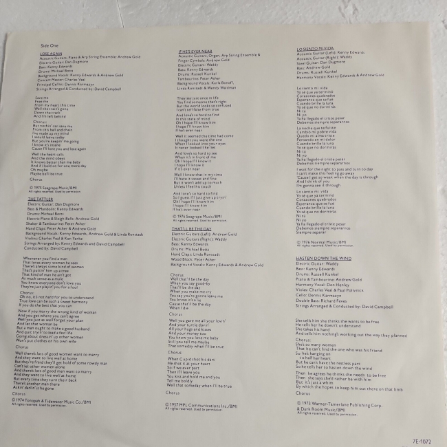 Andrew Gold - organ, keyboards, ARP String Ensemble, finger cymbals, sleigh bells, handclaps, clavinet, vocals, background vocals, acoustic and electric piano, electric, rhythm and acoustic guitar, clavichord