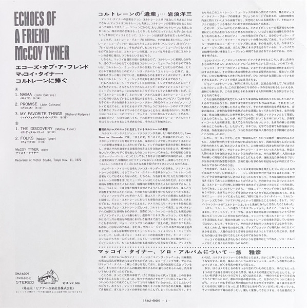 Ecos de un amigo es un álbum de 1972 del pianista de jazz McCoy Tyner, publicado por el sello JVC y, posteriormente, por el sello Milestone. Fue grabado en Tokio, Japón, el 11 de noviembre de 1972, y cuenta con Tyner en un homenaje al piano solo a John Coltrane.