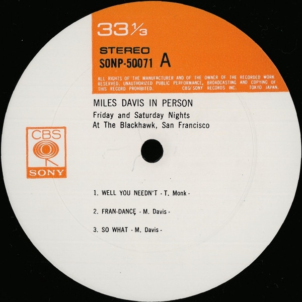 solo la escucha del tema so what que a tantos como yo hicieron nos deslumbrase miles o su version de otro gran standar de sonny rollins OLEO..vale este albun grabado en el Blackhawk Restaurant, Hyde and Turk Streets, san francisco el 22 de abril de 1961 ,en realidad era un club nocturno