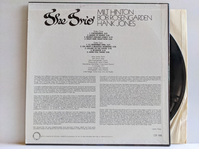Con Hank Jones (piano), Milt Hinton (bajo) y Bob Rosengarden (batería).