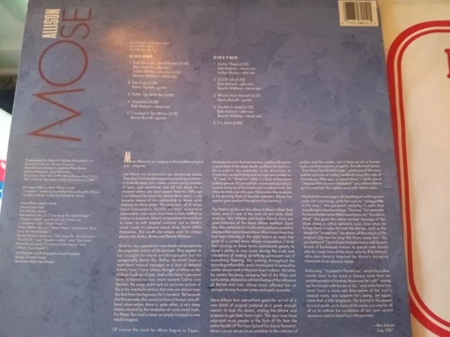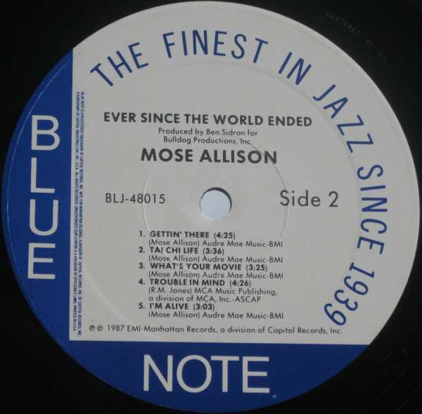 BRILLANTE TRABAJO EDITADO POR EL MITICO SELLO BLUE NOTE EN EN 1987 DE EL GRAN MOSE ALLISON POR EL QUE TENEMOS DESDE AQUI DEBILIDAD