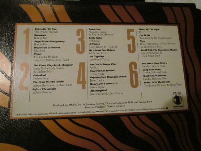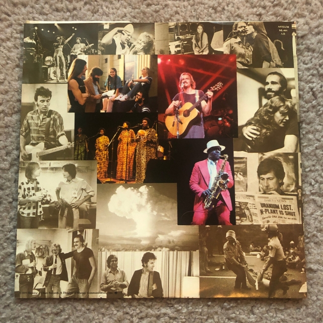 Está genial. Son dos discos grabados en directo de un concierto del año 79 en contra de las centrales nucleares en el que participaron casi todos los artistas activistas sociales de la época (algunos como Bob Dylan o Neil Young no aparecen pero participaron, pues hay canciones suyas cantadas por James Taylor o Nicolette Larson)