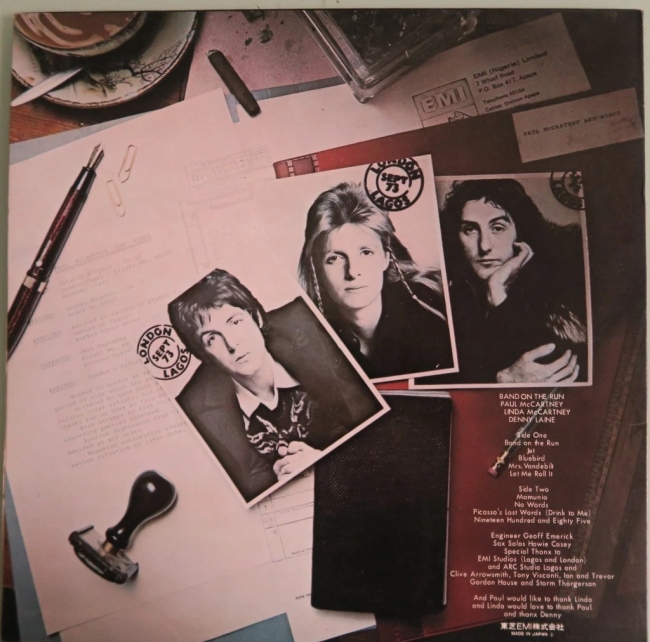 Un agradecimiento especial a EMI Studios (Lagos y Londres) y ARC Studio Lagos y Clive Arrowsmith, Tony Visconti, Ian y Trevor Gordon House y Storm Thorgerson. Y a Paul le gustaría agradecer a Linda y a Linda le encantaría agradecer a Paul y Thanx Denny.