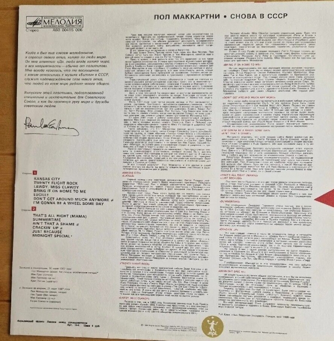 ????? ? ???? (o Back In The USSR en ruso) es un disco que Paul grabó el 20 y 21 de Julio de 1987 (Si, lo grabó en 2 días!)