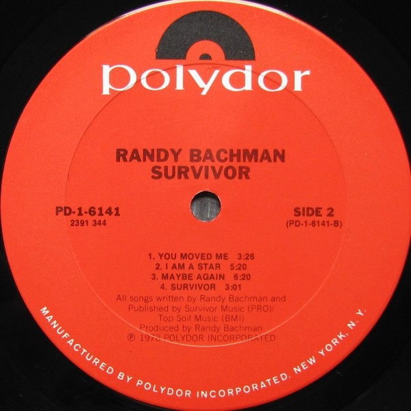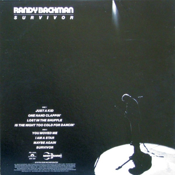 Survivor is Randy's solo album. Recorded in Hollywood in 1978, it features long-time collaborator Burton Cummings on keys and some background vocals