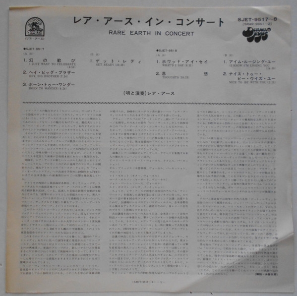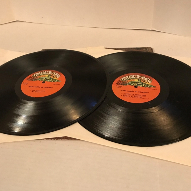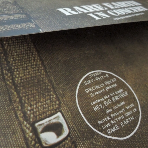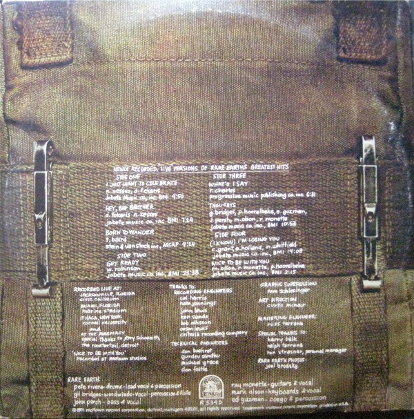 Label variation with text arranged different. Newly recorded, "Live" versions of Rare Earth's Greatest Hits.