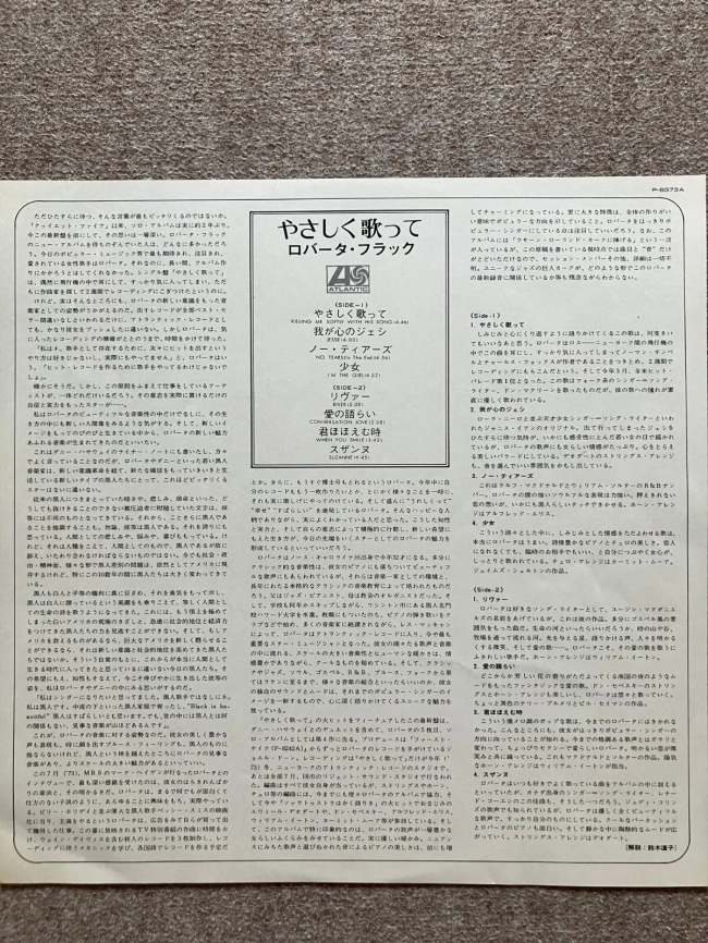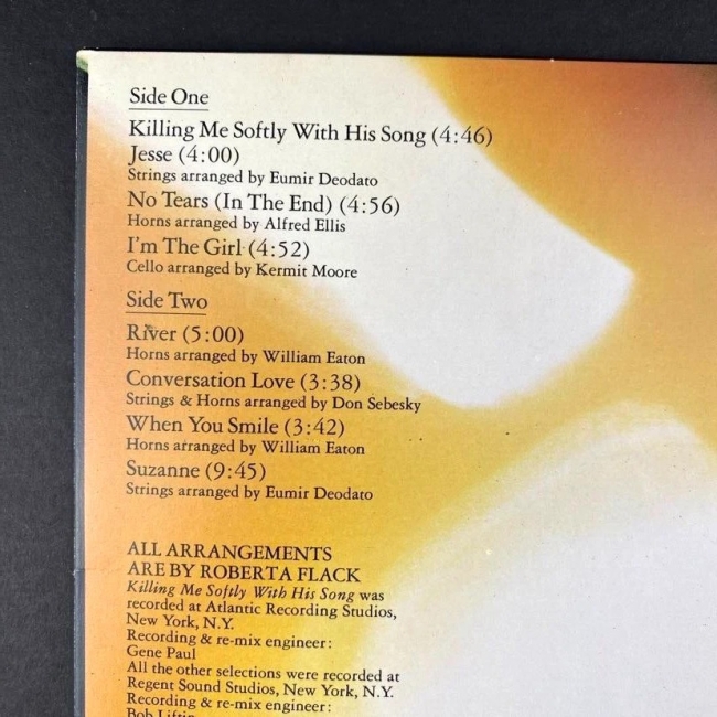 uno de los mas curiosos diseños de caperta que conozco..ya que la carpeta se divide en dos partes que hace que se puedan levantar, una de las partes es la tapa del piano y la parte inferior tambien se mueve, al retirar las solapas dejan ver una gran fotografia de la joven toberta flack, lo dicho toda una maravilla de 1ª edic usa de las que solemos decir, hacen aficion al vinilo !!