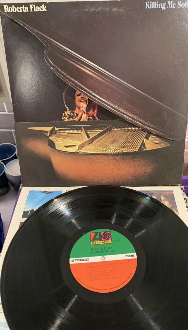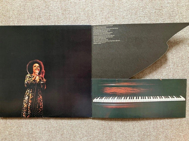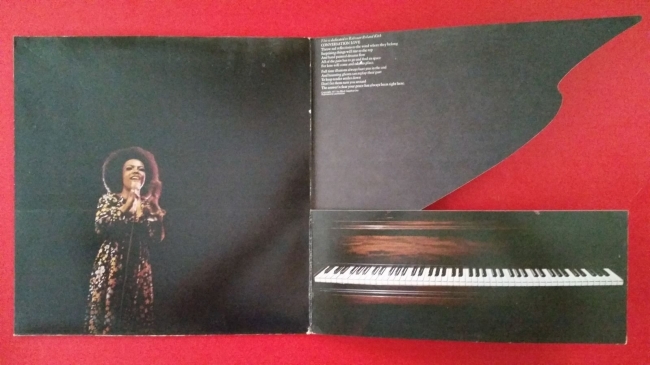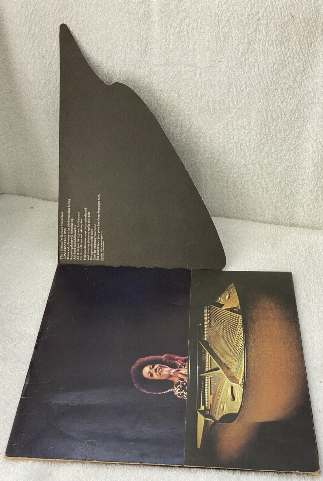 uno de los mas curiosos diseños de caperta que conozco..ya que la carpeta se divide en dos partes que hace que se puedan levantar, una de las partes es la tapa del piano y la parte inferior tambien se mueve, al retirar las solapas dejan ver una gran fotografia de la joven toberta flack, lo dicho toda una maravilla de 1ª edic usa de las que solemos decir, hacen aficion al vinilo !!