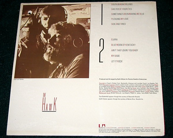 A raíz de su aparición en The Last Waltz de The Band, su primer empleador, Ronnie Hawkins, consiguió un último contrato con United Artists y lanzó The Hawk en 1979. Este fue un asunto de gran sello, de gran presupuesto, con el apoyo de grandes nombres como James Burton, Paul Butterfield, Garth Hudson y Keith Allison, quienes produjeron este disco y le dieron una sensación elegante y brillante no muy diferente a los álbumes de rock de finales de los 70 de Rick Nelson o renovadores como Rockpile.