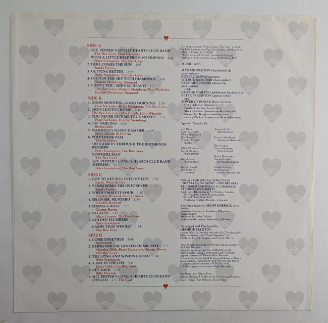 álbum doble producido por George Martin , con versiones de canciones de los Beatles . Fue lanzado en julio de 1978, como la banda sonora de la película Sgt. Pepper's Lonely Hearts Club Band , protagonizada por los Bee Gees , Peter Frampton