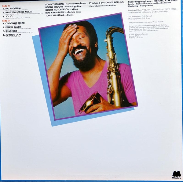 SONNY ROLLINS con monstruos como Tony Williams y Bobby Hutcherson sentados en la sesión, la mejor canción del álbum es la composición de Hutcherson, "Jo Jo". La balada "Illusions" también es buena. Sé que Hutcherson estuvo de gira con Rollins en esta época. Estoy seguro de que fueron fabulosos en concierto.