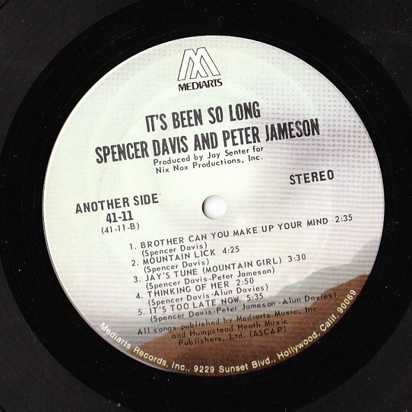 el legendario spencer davis, uno de los musicos fundamentales en la musica britanica...viajo a california y se unio a james jameson y Alun Davies para grabar este delicado albun lleno de sonidos acusticos