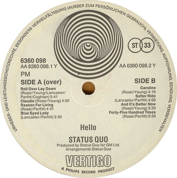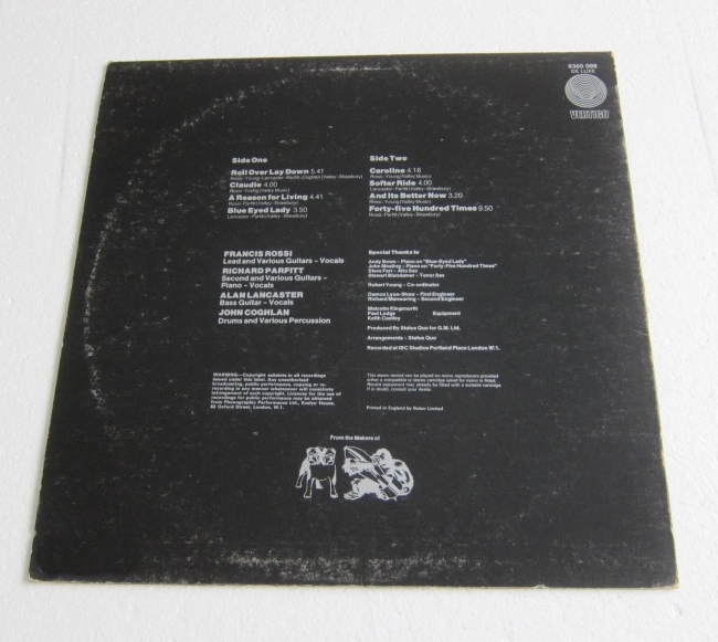 El álbum arranca con “Roll Over Lay Down” compuesto por todo el grupo, destacando el ritmo machacón, marca de fábrica, salpicado de injertos solistas a cargo de Francis Rossi con sugestivos punteos y un interludio minimalista al que sigue un crescendo para retomar el ritmo recurrente. La continuación, “Claudie”, fruto de la asociación entre Rossi y Young, es uno de los temas más calmados del disco, dotado de una sencilla y contagiosa estructura además de una vocalización suave y delicadas armonías.