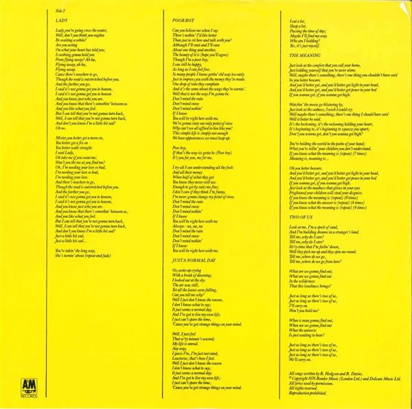 These songs were recorded in the summer of 1975 at the A&M Studios in Los Angeles.