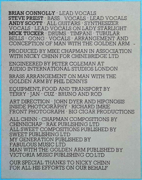 Steve Priest – bajo eléctrico, voz principal (canciones 3 y 7) y coros.