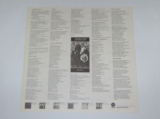 Hacía cuatro años que no grababan material nuevo y toda la opinión pública pensaba que ya no tenían nada que ofrecer que eclipsara a sus tres primeros discos. Ellos mismos, de hecho, creían que estaban a punto de separarse. Pero una relocación a California y un nuevo estudio -llamado muy apropiadamente Shangri-La- los revitalizó y de esa nueva vida salió Northern Lights - Southern Cross, su bello canto de cisne (más allá del disco-por-contrato Islands y The Last Waltz, su despedida). Escuchen nomás el rítmico "Forbidden Fruit", con su hipnótica armonía, o la bellísima "Acadian Driftwood" con su desgarradora historia, o "It Makes No Difference", con la voz conmovedora de Danko... Un disco maravilloso, una perfecta despedida del estudio para una de las mejores bandas de la historia.