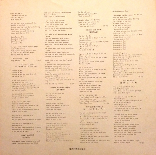 Back cover only list "This Boy" as being published by Maclen Music Inc. and all other selections published by Maclen Music Inc. and Unart Music Corp.