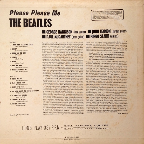 Éxito histórico: Alcanzó el número 1 en las listas británicas en mayo de 1963 y se mantuvo allí durante 30 semanas consecutivas, hasta que fue reemplazado por su segundo disco, With the Beatles.