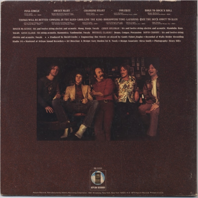 Byrds fue el álbum más alto de la banda con material nuevo desde Turn! ¡Giro! Turn!, que también había sido el último álbum de los Byrds en presentar a Clark como miembro de pleno derecho. [9] Tres de las canciones del álbum, "Full Circle", "Things Will Be Better" y "Cowgirl in the Sand", fueron lanzadas como sencillos durante 1973,