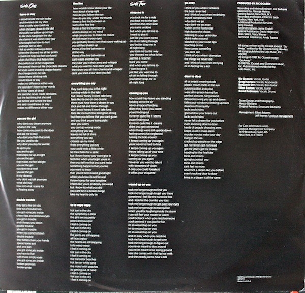 Con este elepé se confirma el carisma del cantante del grupo, Ric Ocasek, Pop rock elaborado y con una acertada utilización de los instrumentos en cada una de las canciones, en especial las guitarras eléctricas y teclados, una obra a tener en cuenta. .como ocurre en otros discos y con otras bandas, pues The Cars se aplica con soltura a la hora de buscar un sonido que defina al quinteto más allá de su estética de combo moderno.