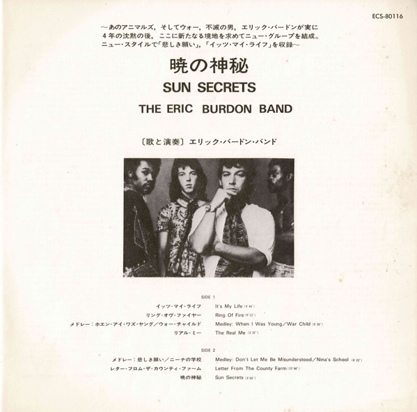 En cierto modo Sun Secrets parece la vuelta de Eric Burdon al sonido rockero de los Animals pero no, El sonido es realmente muy diferente la banda de Eric no incluye teclados.
