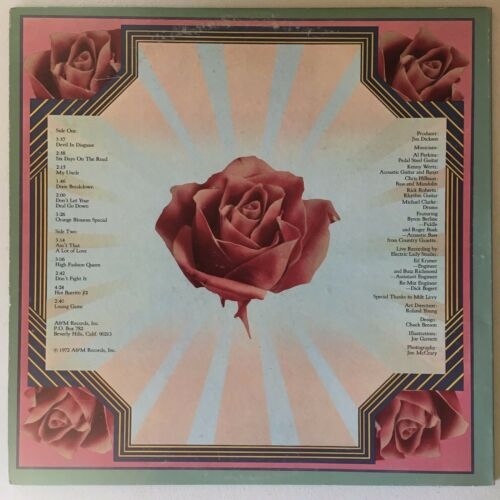 GRAN ALBUN DE 1972, fue su 4º albun oficial y cuenta CON MUSICOS EXTRAORDINARIO COMO.. Al Perkins (pedal steel), Kenny Wertz (guitar, banjo), Chris Hillman (bass, mandolin), Rick Roberts (guitar), Michael Clarke (drums), and some fantastic fiddle playing by Byron Berline. It has a great selection of songs,.
