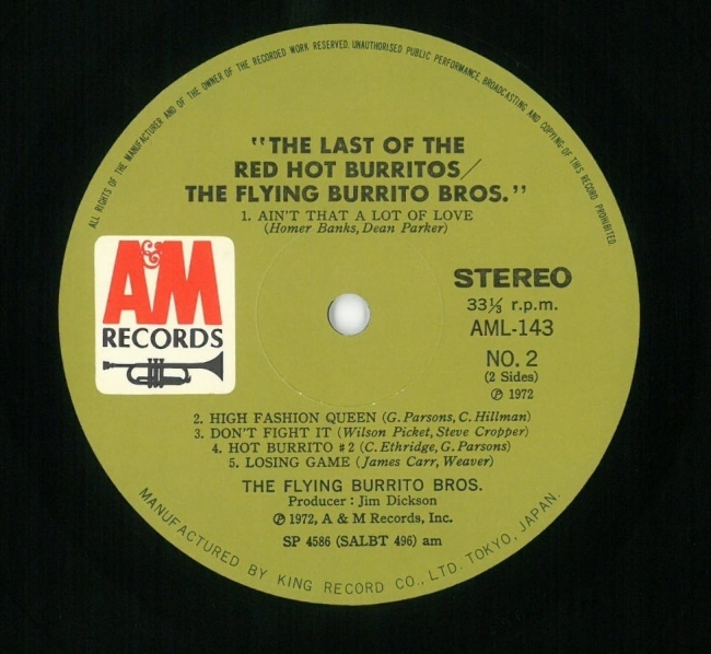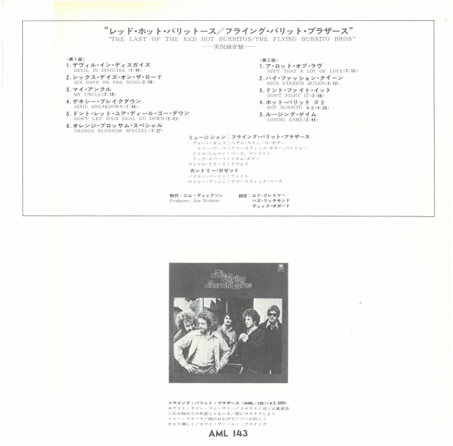 dos exmiembros de los Byrds, Chris Hillman y Michael Clarke, con Al Perkins, Kenny Wertz y Rick Roberts. También hay algunas canciones de bluegrass con miembros del Country Gazette, Byron Berline y Roger Bush. Una buena mezcla de temas en este LP. Imprescindible para los aficionados a los burritos. ¡Recomendado!