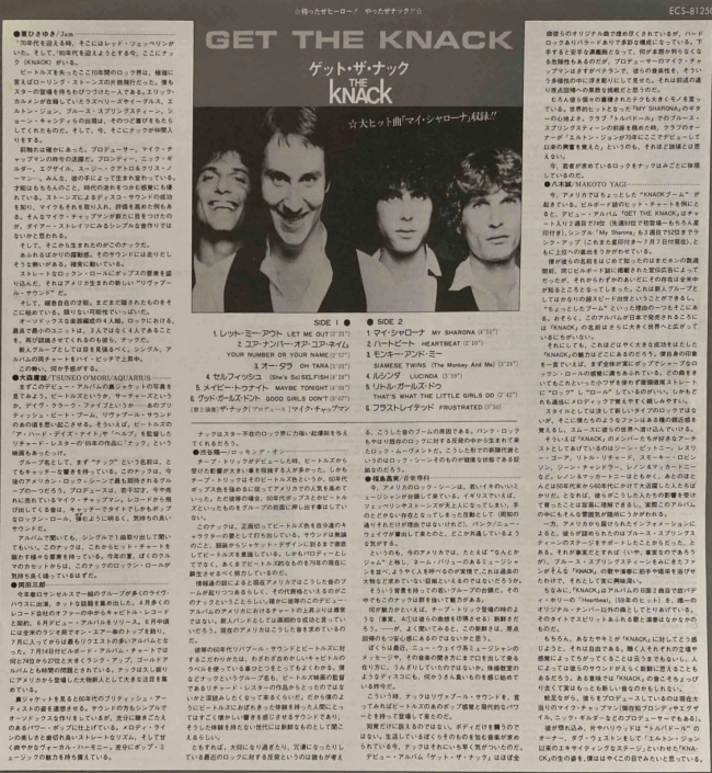 puntales del Power Pop de los 70: The Knack. El grupo fue el causante de tal alboroto que las inevitables comparaciones con Los Beatles y la (merecida) popularidad del cuarteto de Los Angeles terminaron por volverse en su contra y hundirles: en 1978 y 1979 eran los reyes de las listas en los USA, y en el 81 casi nadie los recordaba. Y eso que The Knack NO fueron un montaje ni un mero producto de la 'Capitol': eran un grupo real, con un ejercito de fans. El primer LP de la banda no tiene puntos flacos: es Pop de guitarras con Beatles, Who, Kinks, Byrds y otras luminarias como referencia. 'Your Number Or Your Name', 'Good Girls Don't', 'That's What The Little Girls Do' (brillante) y 'My Sharonna' son las que escuchamos a menudo, pero las otras ocho son igual de buenas.