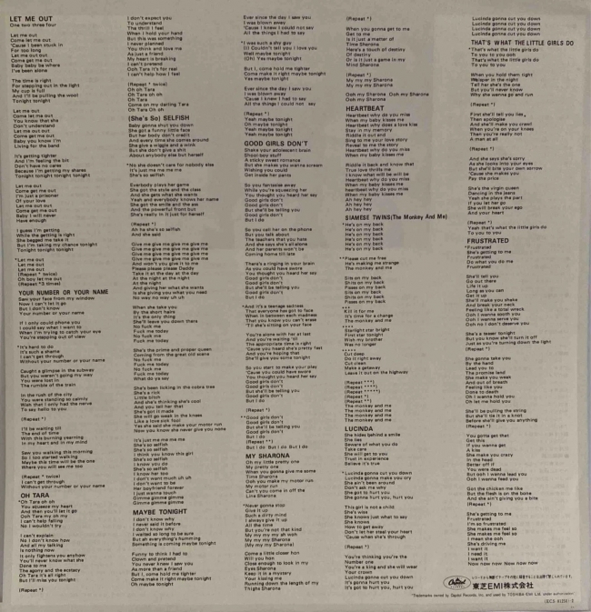 SIEMPRE BUSCADISIMO ESTE SU 1º LP....en esta completa y muy coleccionable 1ª edic editada en japon, 1º label capitol color negro arcoiris, esta edicion tambien contiene inserto interior a 2 caras con fotos y textos en ingles y japones de los textos de los temas etc...