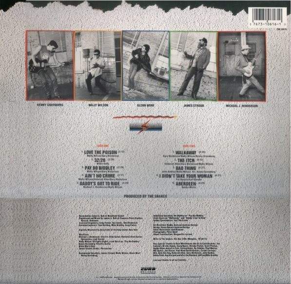 The Snakes are Mike Henderson (Guitars, Harmonica and Lead Vocals), Wally Wilson (All Eighty Eights), Kenny Greenberg (Electric Guitar), James Stroud (Drums, Percussion) and Glenn Worf (Bass).
