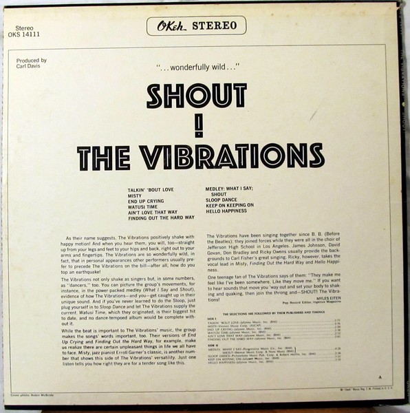 Formados en Los Ángeles a mediados de la década de 1950, estos tipos aparentemente tienen un trasfondo bastante complicado. Carver Bunkham, Carl Fisher, Dave Govan y James Johnson descubrieron un interés mutuo en la música mientras asistían a la Jefferson High School de Los Ángeles. Antes de su encarnación como The Vibrations, habían grabado como The Jayhawks y The Marathons.