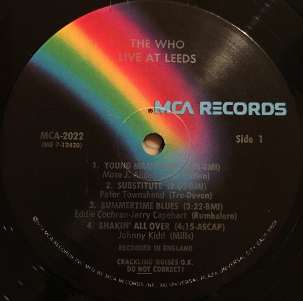 Produced by The Who at Leeds University