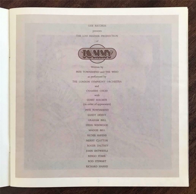The Beatles Contribution: Ringo is a guest vocalist on two tracks..LabelOdeCatalogue No.ODE 99001Release date24th November 1972U.K. L.P. Chart Detail :I`m surprised, but I couldn`t find any chart entry for this album (?)Detail :The Who's rock opera "Tommy" as performed by The London Symphony Orchestra and Chambre Choir with Guest Soloists.