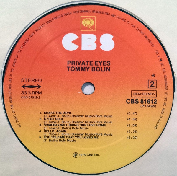 Luego de la separacion de Deep Purple en 1976, Tommy Bolin que habia reemplazado a Ritchie Blackmore en el ultimo disco de Deep Purple (Come Taste The Band), se pone a trabajar en su segundo album solista, Private Eyes.