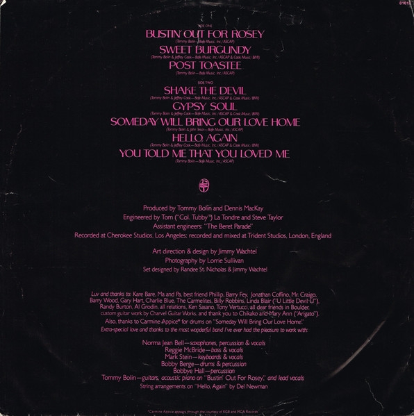 Tommy Bolin: Guitars, Acoustic Piano & Lead Vocals