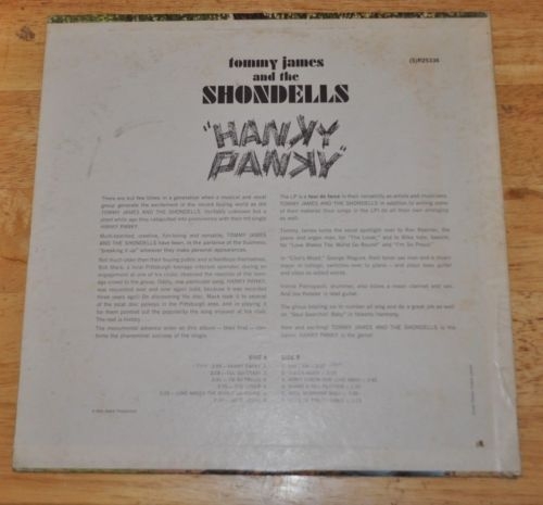 Hanky Panky es el álbum debut de Tommy James and the Shondells y se lanzó en 1966. . El álbum tenía dos singles que trazaron. "Hanky Panky" alcanzó el número 1 en Billboard Hot 100 [ y "Say I Am (What I Am)" alcanzó el número 21.