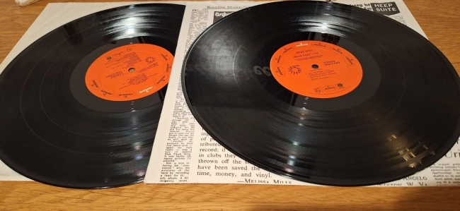 lujoso 1º prensaje, label mercury color rojo, con doble carpeta sin codigos de barra contiene el gran libreto de 8 paginas con grandes fotografias de cada miembro etc.. y tambien los 2 org encartes con mas fotografias,prensa, informacion etc... !!!...