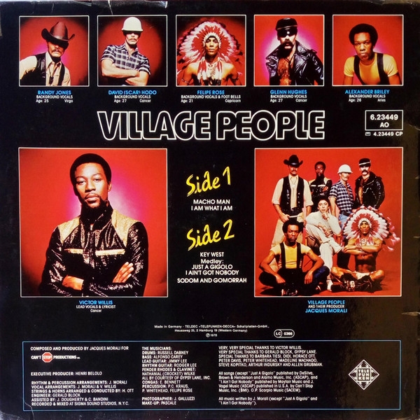 Durante su exitosa carrera, produjeron varios éxitos mundiales, entre ellos "Y. M.C.A.", "In The Navy", "Macho Man" y "Go West". También estuvieron en las listas de éxitos de los 80 con canciones como "Can't Stop The Music" y "Sex Over The Phone".