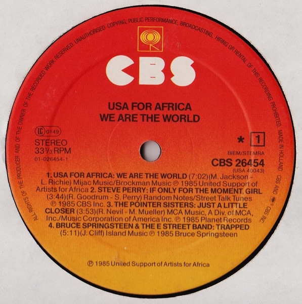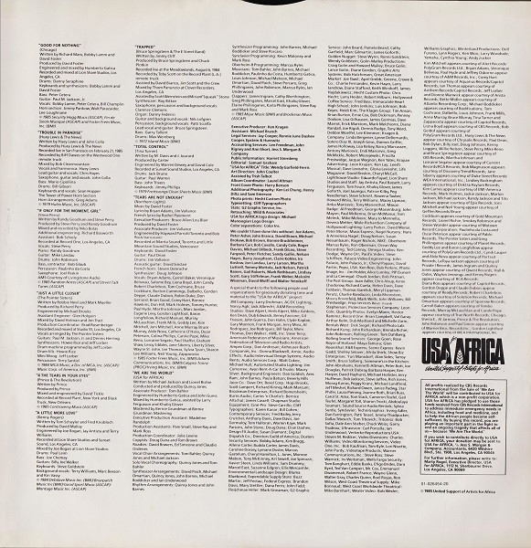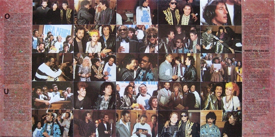 Performer – Al Jarreau, Bette Midler, Billy Joel, Bob Dylan, Bob Geldof, Bruce Springsteen, Dan Aykroyd, Hall & Oates*, Diana Ross, Dionne Warwick, Harry Belafonte, Huey Lewis & The News, Jackie Jackson, James Ingram, Jeffrey Osborne, Kenny Loggins, Kenny Rogers, Kim Carnes, La Toya Jackson, Lindsey Buckingham, Lionel Richie, Marlon Jackson, Michael Jackson, Paul Simon, The Pointer Sisters*, Randy Jackson, Ray Charles, Sheila E., Smokey Robinson, Steve Perry, Stevie Wonder, Tina Turner, Tito Jackson, Waylon Jennings, Willie Nelson