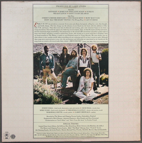 no solo Jimmy Hall todavía tenía una gran voz, sino que él y el tecladista / vocalista / compositor Mike Duke se unieron en la armonía vocal (un nuevo elemento) por el guitarrista Marshall Smith y el baterista Theophilus K. Lively. Con el guitarrista Larry Berwald agregado a la mezcla con Jack Hall, como siempre, en el bajo y la voz, el resultado es un álbum excepcional: